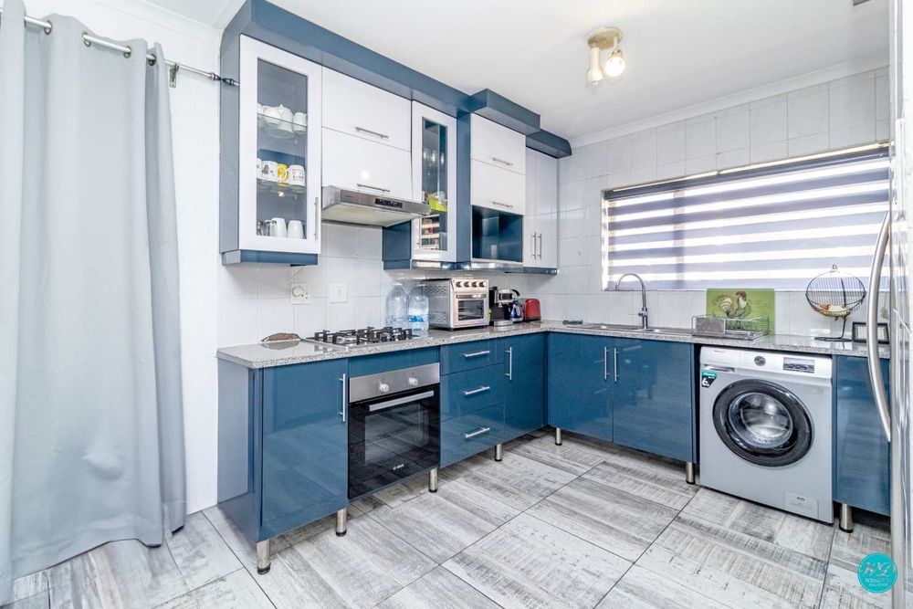 Stunning kitchen with gas/electric stove, ample cupboard space, and room for a double-door fridge