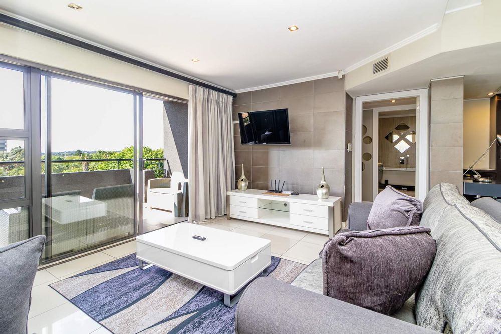 Relaxation and entertainment areas extend to the balcony with wide views of rolling hills and twinkling lights to the north. The unit is fitted with air-con throughout. Two bedrooms with bathrooms en-suite complete this space.