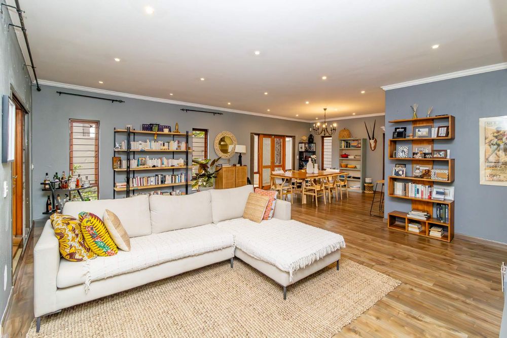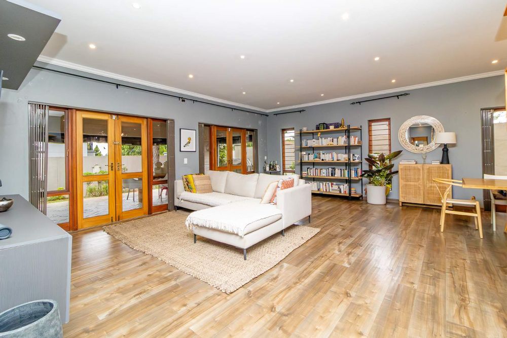 Light-filled open-plan lounge and dining area flowing seamlessly into a gourmet kitchen with separate scullery.