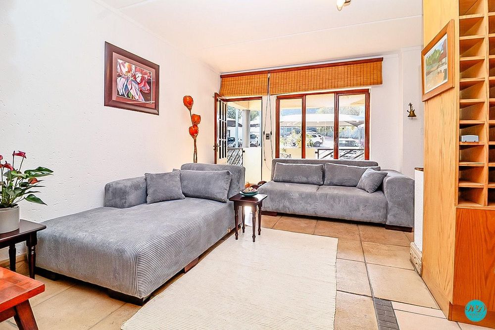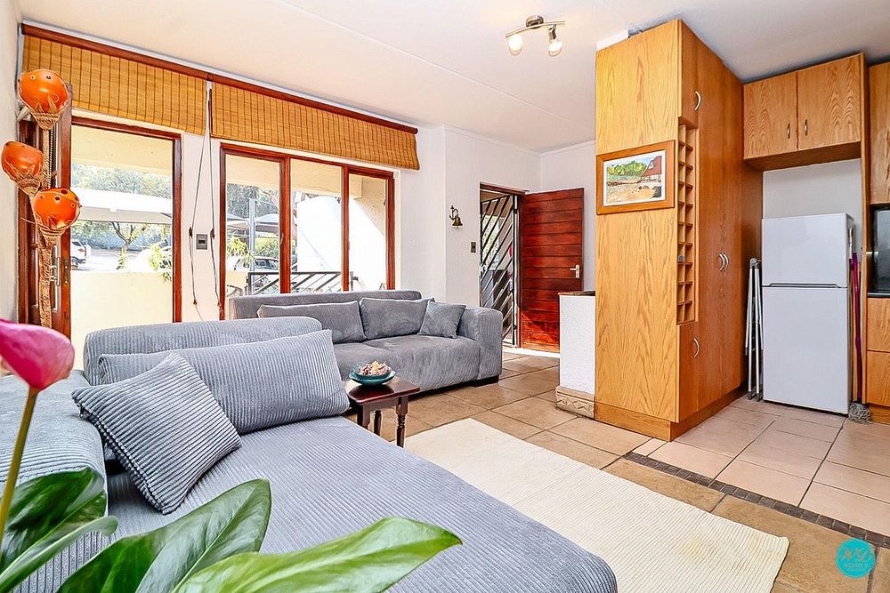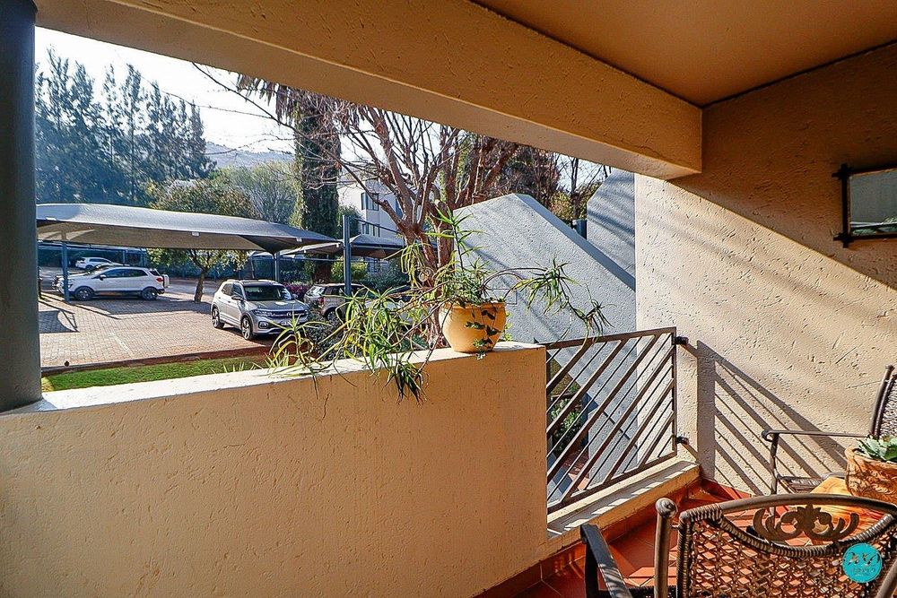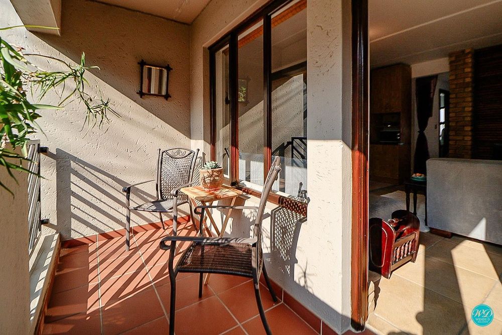 An open-plan living area leading onto a covered balcony, perfect for relaxing and enjoying lush green views