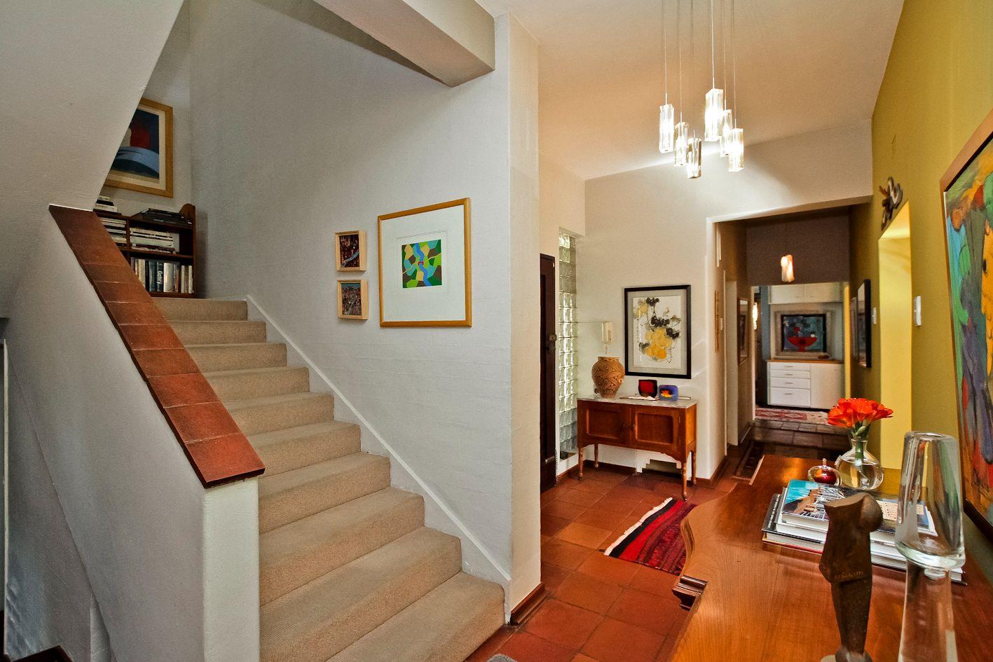 Tiled surfaces alternate with wooden floors on the ground floor. Wall-to-wall carpeting adds additional comfort to the upper-level living areas. The main bedroom is en suite, with an additional bathroom serving two separate bedrooms. A study and tree-tops balcony retreat complete this level.